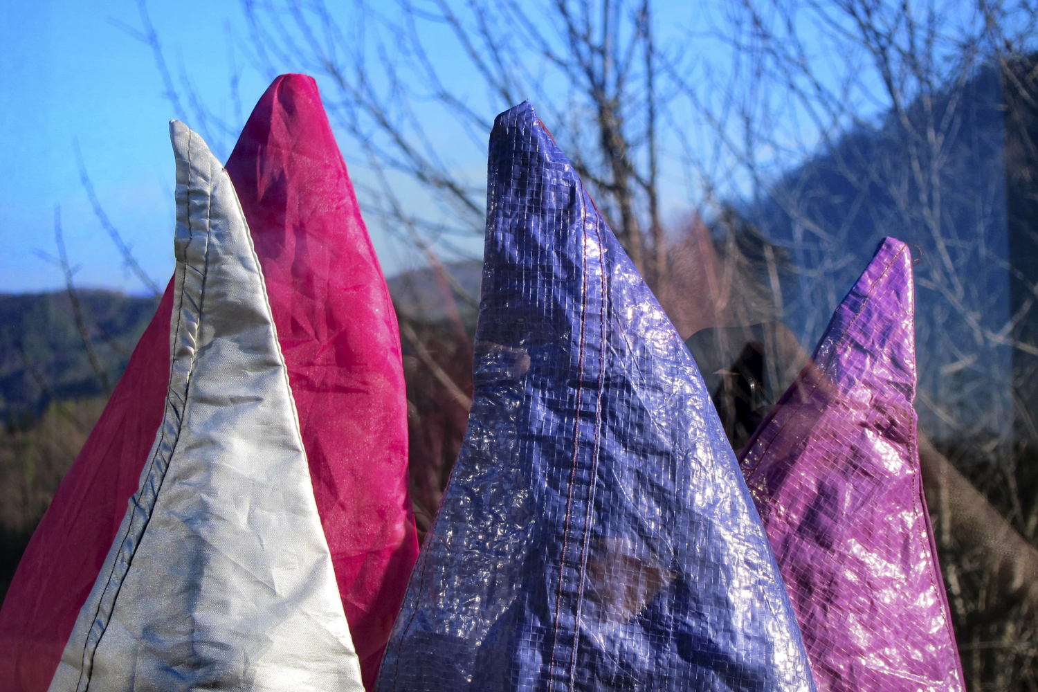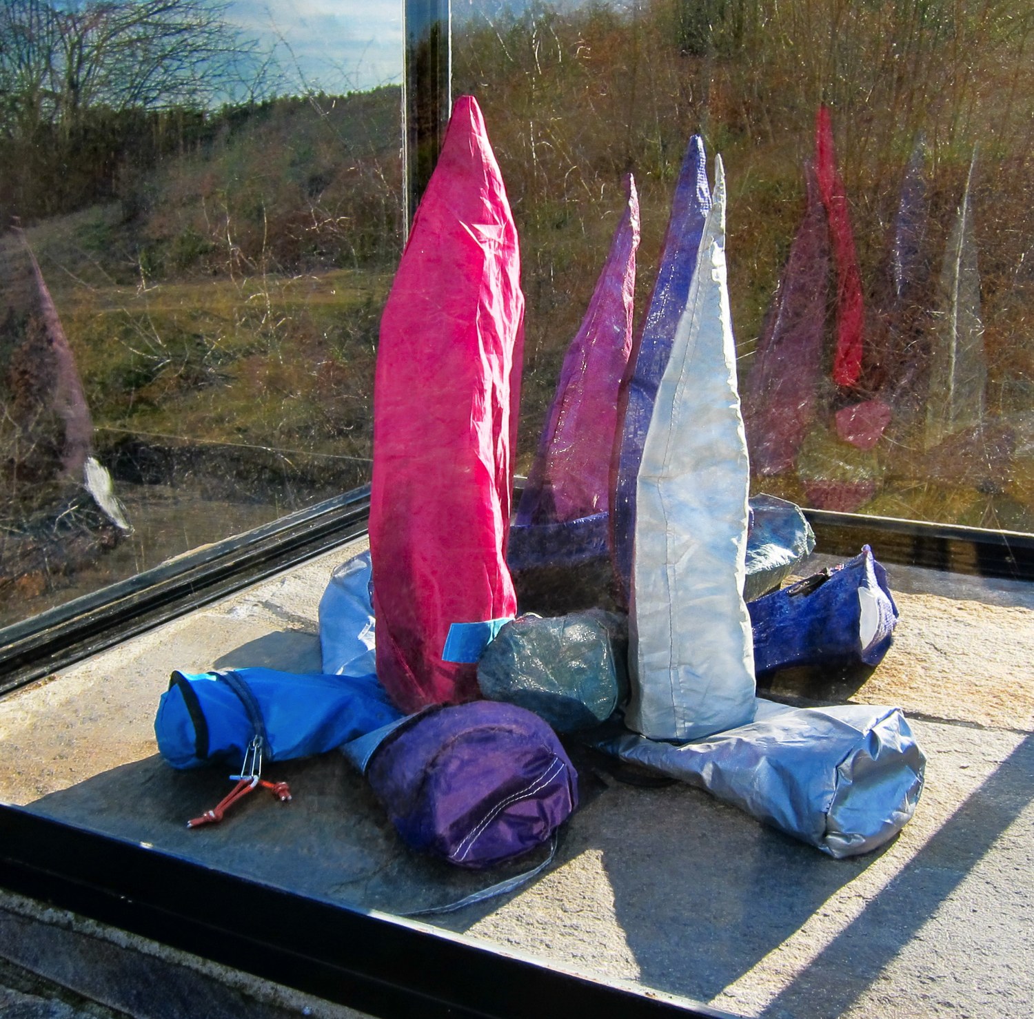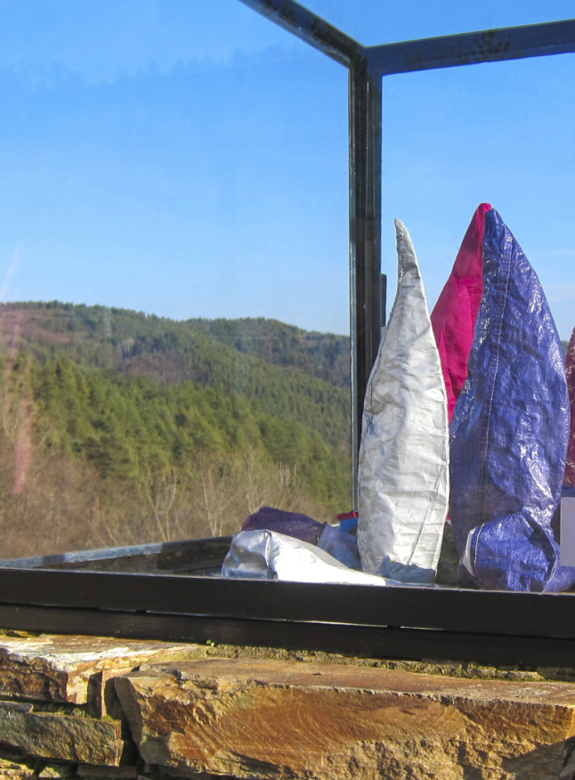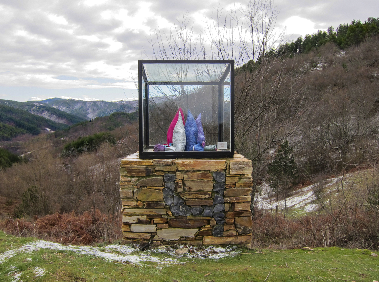 Diese touristische Ausrüstung steht für die Beziehung zwischen Mensch und Natur. Während die Natur in abgegrenzten Gebieten unter Schutz gestellt wird, drängt sich ihr gleichzeitig eine wachsende Ökonomie des Naturtourismus auf. Die Inszenierung in der Vitrine in der Weite der Berge thematisiert auch die paradoxe Bedingtheit zwischen der Sehnsucht nach Verbundenheit mit der Natur und der gleichzeitigen Gewissheit, in die Sicherheit des eigenen Lebensraums zurückzukehren.