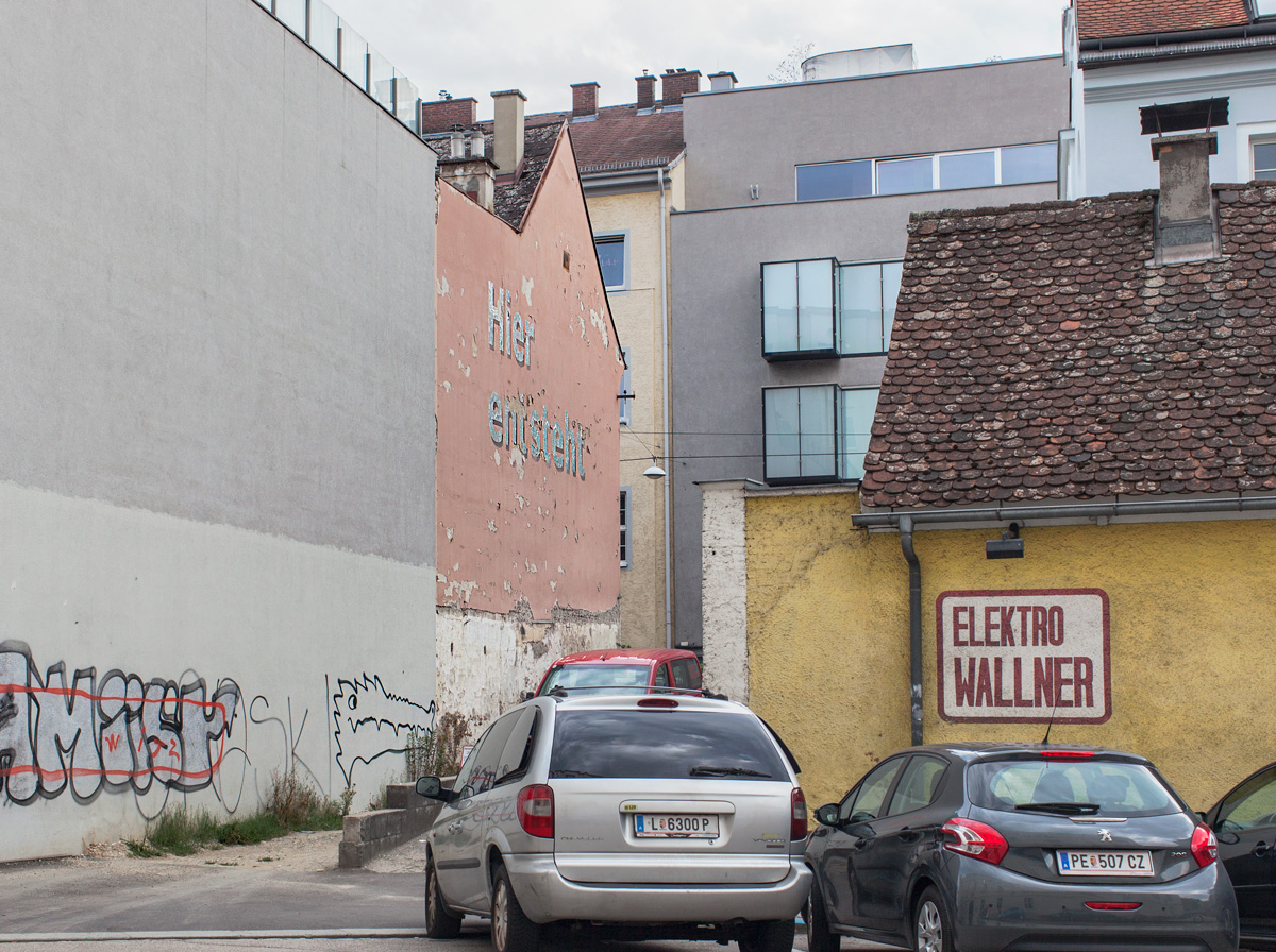 Linz City, Österreich, Baulücke zwischen Graben und Kollegiumsgasse