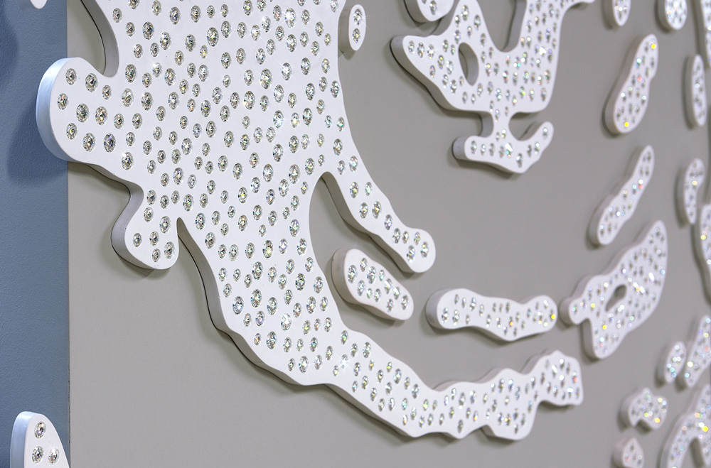 In den tausendfachen kleinen Reflexionen und im oszillierenden Flimmern der Steine liegt der hohe Reiz dieses "Juwels". So wie der Astronaut Edgar Mitchel einst den Erdaufgang beschrieb: "Plötzlich tauchte hinter dem Rande des Mondes in langen zeitlupenartigen Momenten von grenzenloser Majestät ein funkelndes blauweißes Juwel auf, eine helle, zarte, Kugel." -die Erde auf dem Hintergrund der unendlichen Tiefe des Alls.