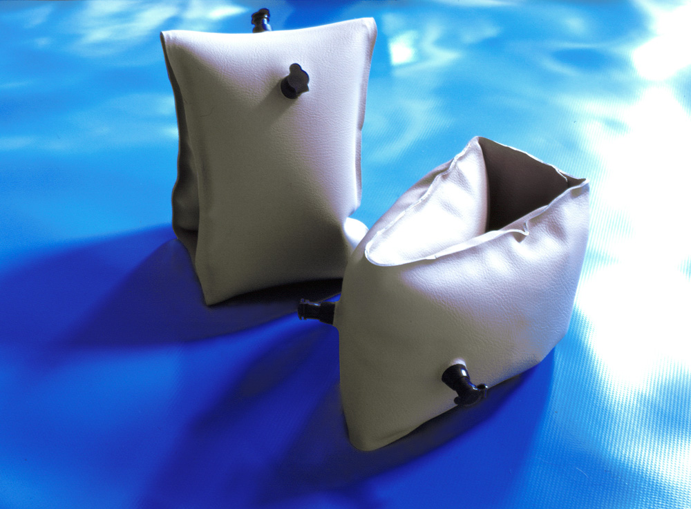 Mit cremefarbenem Kunstleder bezogene Schwimmflügel,