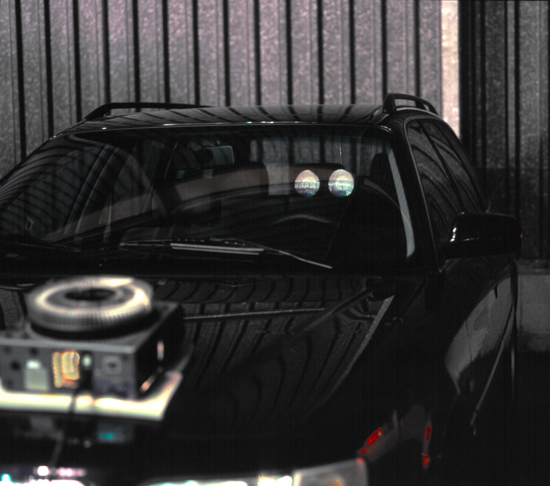 VW-Combi dunkel, Konfektpapier, Diaprojektion